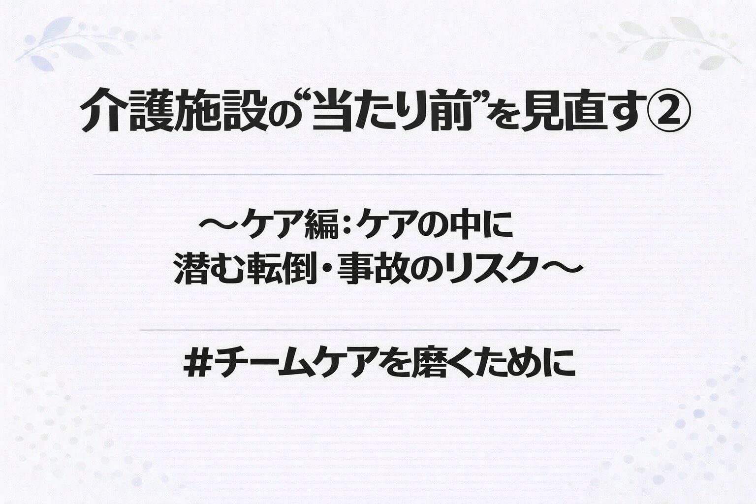 介護施設の“当たり前”を見直す② ~ケア編:ケアの中に潜む転倒・事故のリスク~