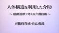介助では、持ち上げるのではなく、動きを誘導するという発想が重要です。