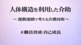 本来の介助は、スライド・回転・重心移動といった体の動きを活かすことで、少ない力で安全に行うことができます。