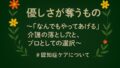 介護において“寄り添い”や“優しさ”は、とても大切な価値です。