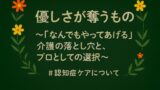 特に、各々の“優しさ”をベースにしているケアであればあるほど、修正が伝えにくく、受け入れにくいものです。