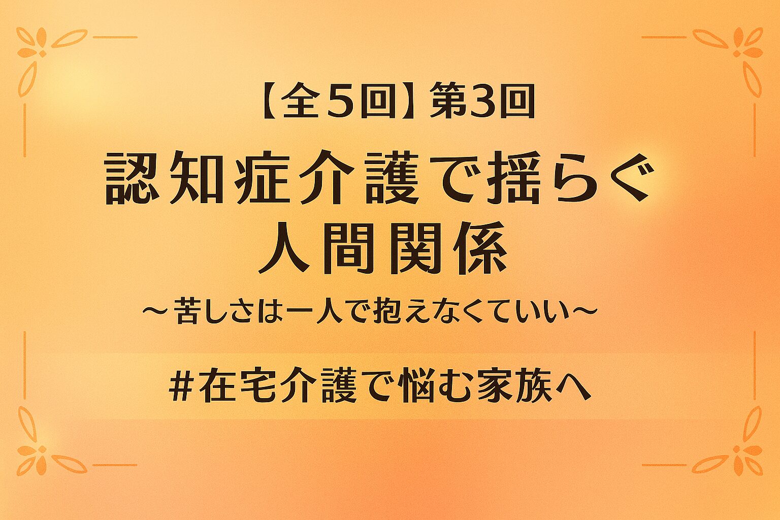 この第3回では、在宅で認知症介護をしている家族が直面しやすい“人間関係の揺らぎ”に焦点を当てています。
