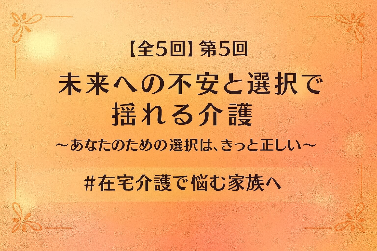 【全5回】第5回:未来への不安と選択で揺れる介護 ~あなたのための選択は、きっと正しい~