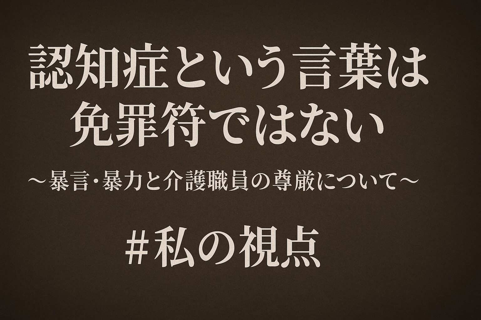 認知症という言葉は免罪符ではない ~暴言・暴力と介護職員の尊厳について~