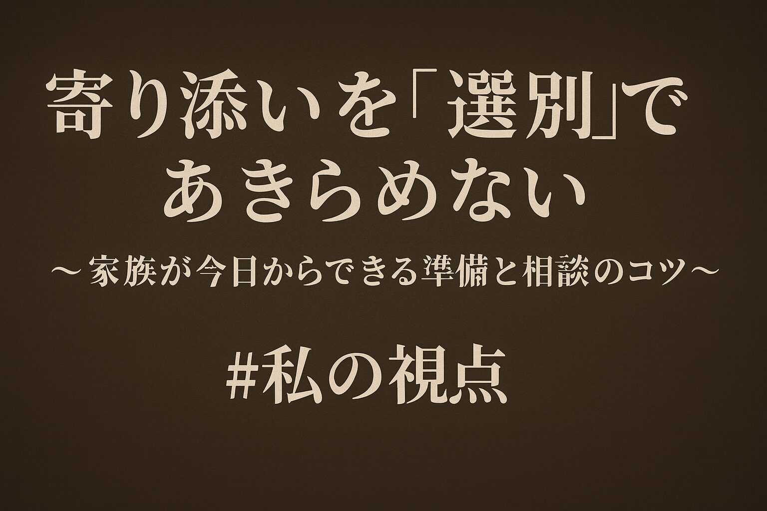 今日の小さな準備が、寄り添いを“選ばれた人だけのもの”にしない力になります。