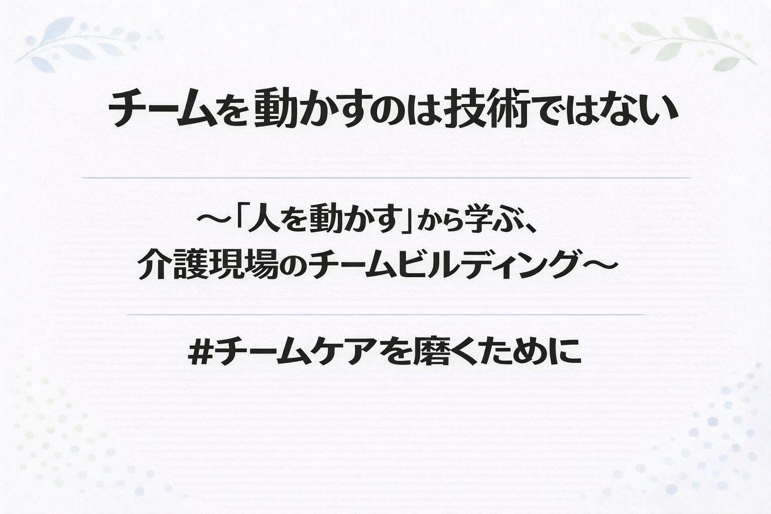 それこそが、チームケアを支える一番の力なのではないでしょうか。