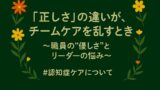 介護の場面では「こうした方がいい」「この方法が安全」という“正しさ”を基準に、ケアの方向性を話し合い、判断することがあります。