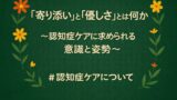 その揺らぎを考え続けられること自体が、認知症介護における専門性なのではないでしょうか。
